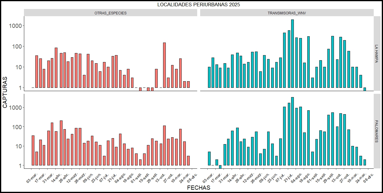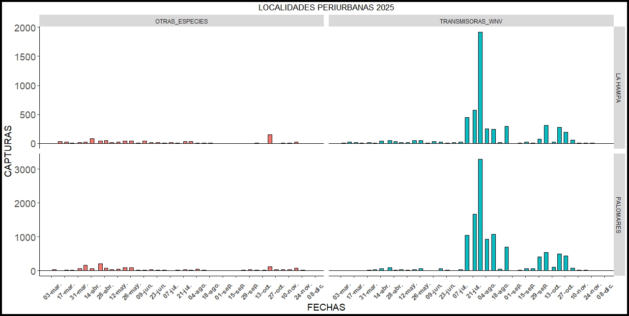 Capturas de mosquitos en localidades periurbanas de PALOMARES y Finca la HAMPA (CSIC), en función de su capacidad transmisora del VIRUS DEL NILO OCCIDENTAL.